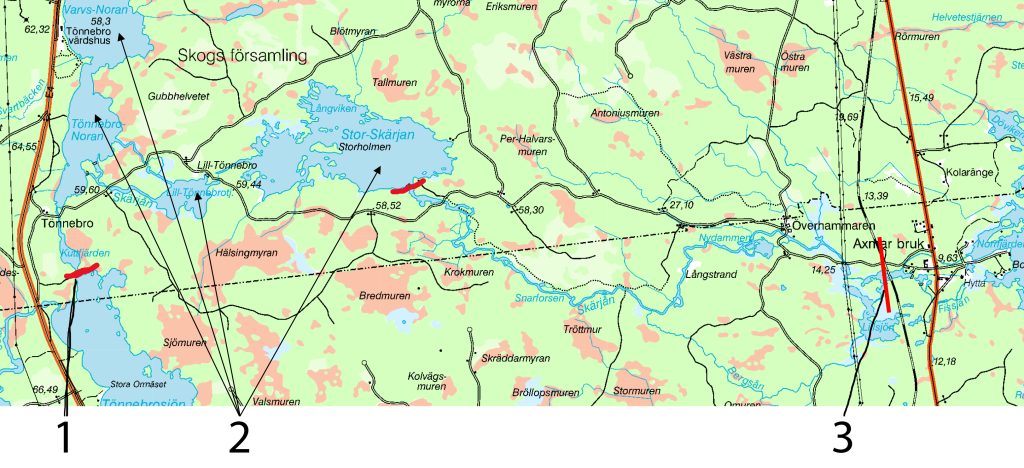 - Sjöar (Stor-Skärjan, Lill-Tönnebrosjön, Tönnebro-Noran och Varvs-Noran) ovan Stor-Skärjans utlopp där fiske är tillåtet.